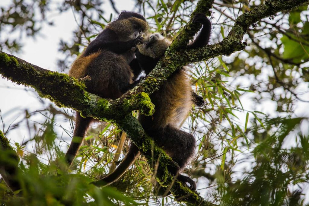 Golden monkeys and gorillas share the Virunga ecosystem, yet they occupy distinct niches. While gorillas inhabit dense forest areas and are primarily folivorous, Golden monkeys are active in bamboo thickets and feed on shoots, fruits, and flowers. Combining Uganda Gorilla Trekking Safaris with Golden Monkey Tracking Safaris creates opportunities for photographers, wildlife enthusiasts, and researchers to document contrasting primate behaviors, social interactions, and ecosystems.