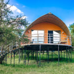 Here, lodges are designed to complement the beauty of the Virunga Volcanoes and offer guests unparalleled luxury amidst the wilderness. Bisate Lodge, by Wilderness Safaris, is often considered Rwanda’s most iconic eco-lodge. Its spherical, thatched villas blend into the forest landscape while offering world-class comfort, fine dining, and panoramic views of Bisoke and Karisimbi volcanoes.