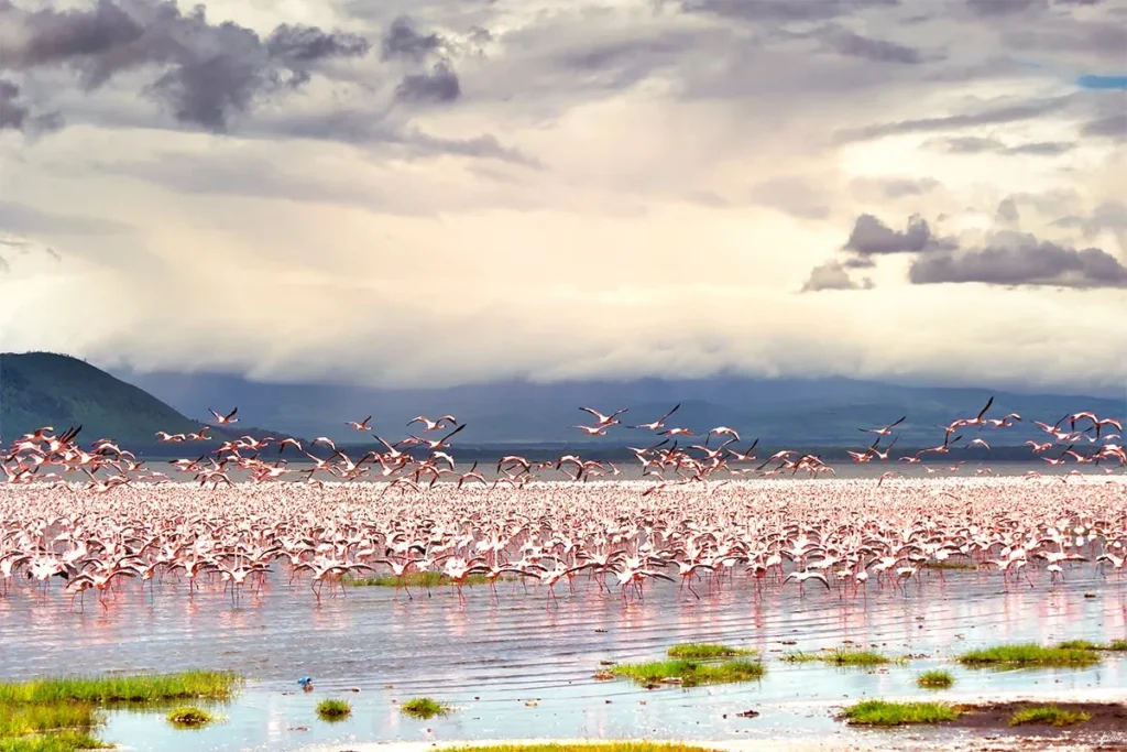 The Serengeti offers unparalleled birding opportunities, making it a must-visit for anyone curious about what is the best time for bird watching in Kenya and Tanzania. Dry seasons from June to October bring large flocks of migratory species, while resident birds like the ostrich, kori bustard, and wattled crane thrive year-round. Tanzania Wildlife Safaris here can easily combine birding with predator observation, especially during the Tanzania Great Migration, when predators and migratory herds create dynamic natural spectacles.